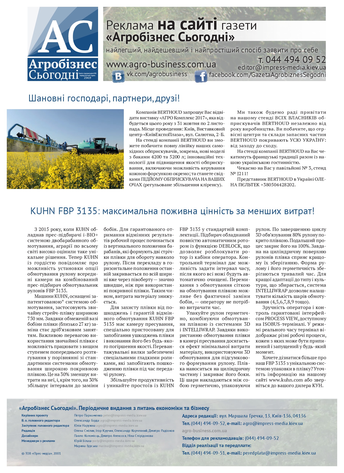 Газета підприємців АПК. Виходить двічі на місяць. Рік заснування 2001