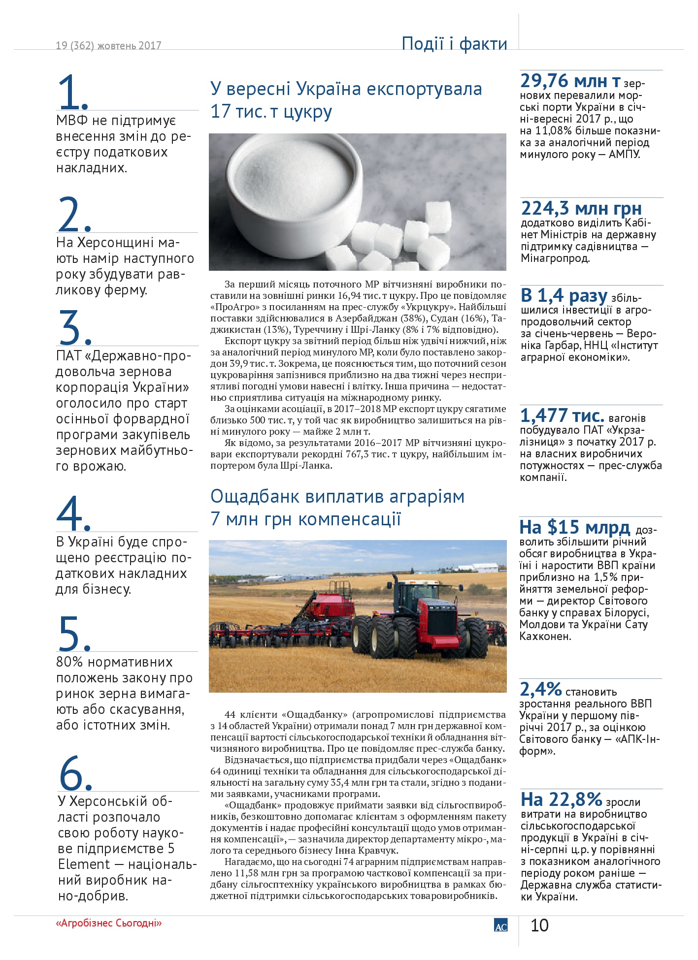 Агробізнес сьогодні № 19(362) жовтень 2017