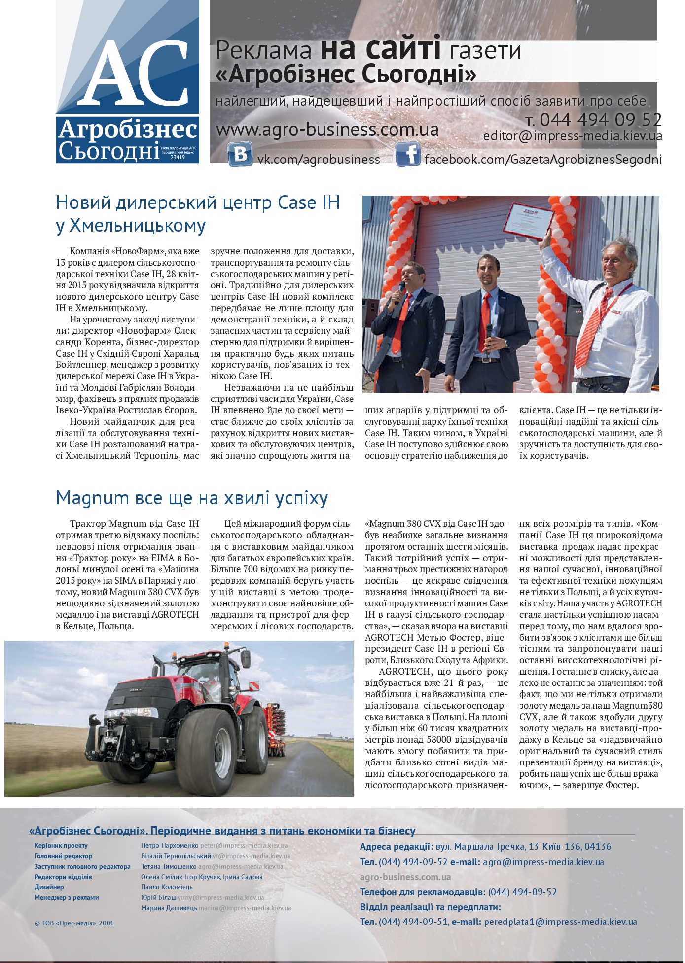 Газета підприємців АПК. Виходить двічі на місяць. Рік заснування 2001