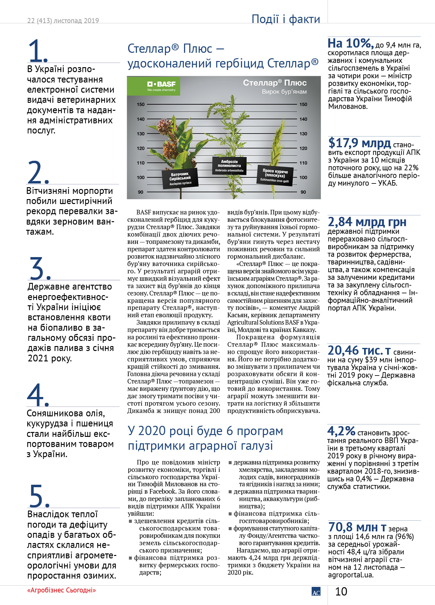 Агробізнес сьогодні № 22(413) листопад 2019